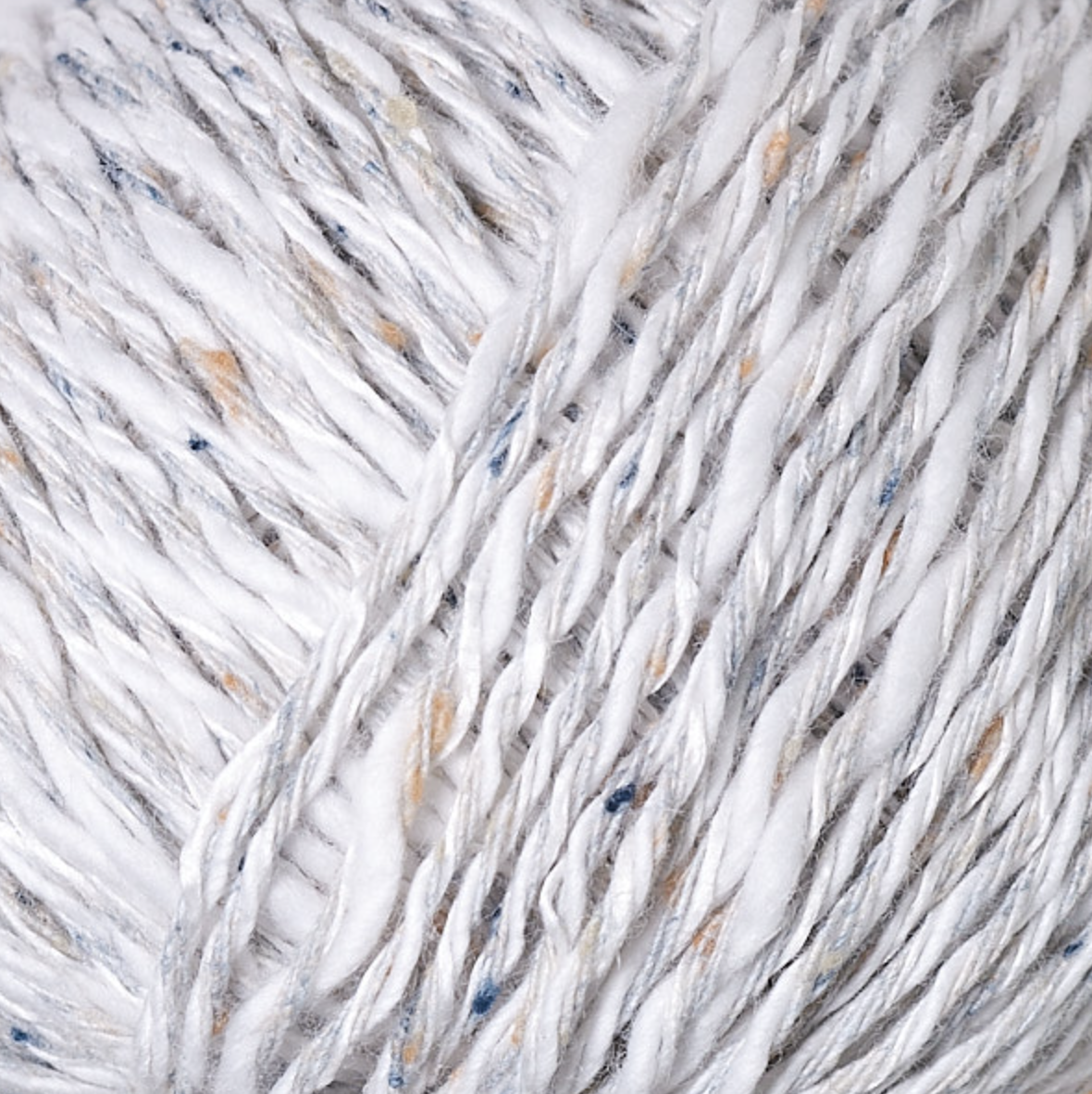A soft yarn made of a thick and thin textured hemp and cotton blend. The yarn has a lovely pebbly texture with a subtle color effect that creates a beautiful stonewash effect. Its light hand and soft drape make it perfect for easy breezy summer projects.