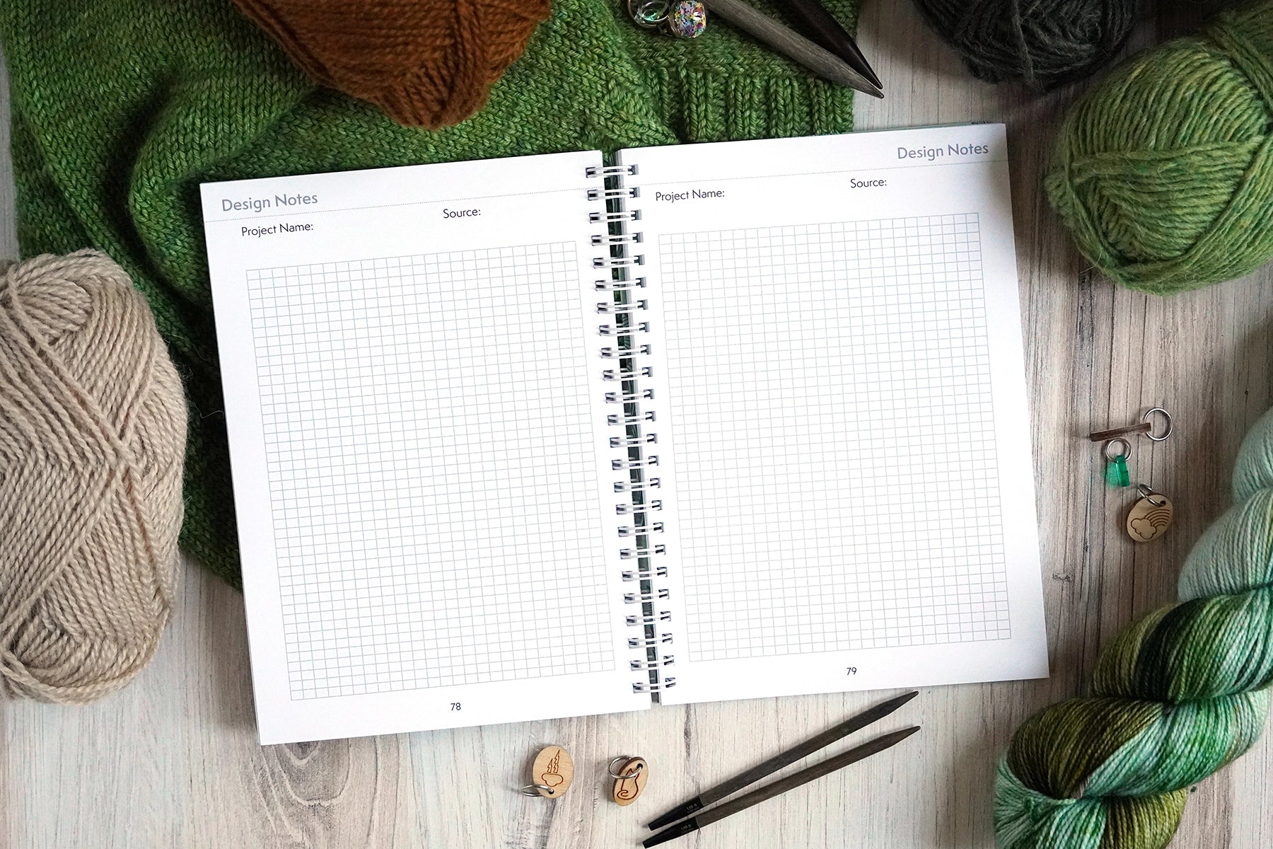 Designed to keep your projects and yarn swatches organized, keep track of projects, as well as offer a space for charts and color work designs to be created, adjusted and duplicated.