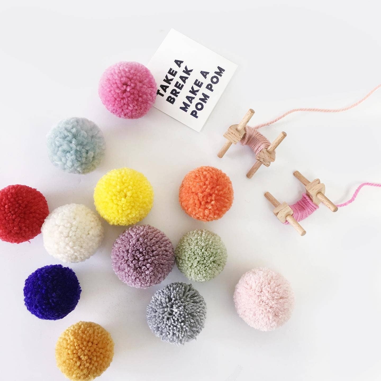 Wooden pompom maker for easy wrapping & comfort for your hands. The original separate parts design makes wrapping a breeze. Pom Maker is loved by beginners for ease of use and by pompom masters alike for its sturdiness and versatility. It makes perfect simple pompoms, but the unique design also allows more ambitious designs to be more easily planned, wrapped, and finished. Eco-friendly tool made of sustainable natural material for conscious makers striving for plastic-free crafting. Extra Small: makes pompoms size 1.5 – 2″ (4 – 5 cm) diameter Solid beech wood from sustainable forests (FSC certified) non-toxic, water-based paint