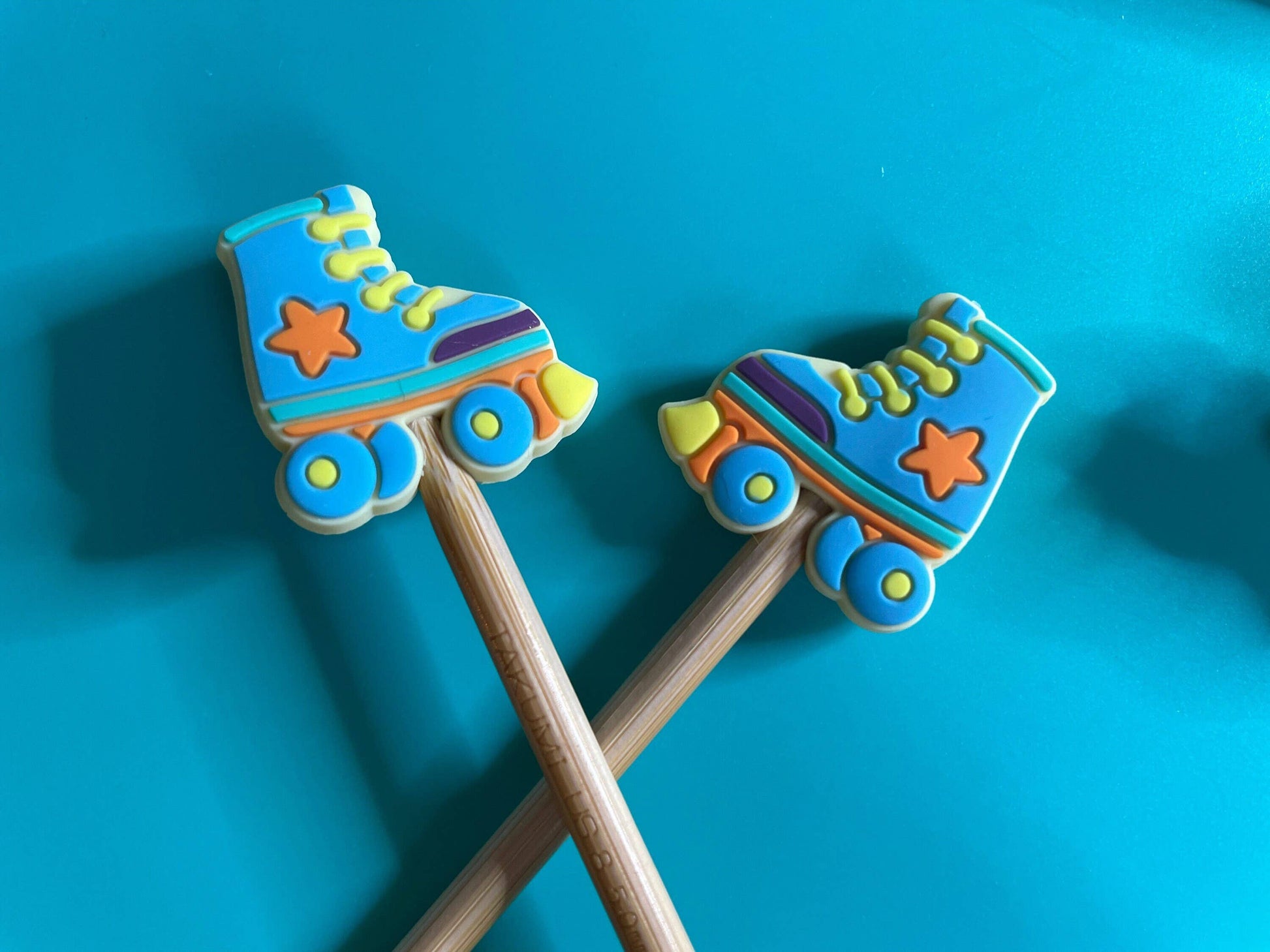 Knitting Needle Point Protectors, Knitting Needle Stoppers, Knitting Notions - Rollerskates Quad Skates Kawaii Cute Gift for Knitters.