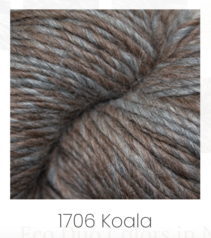 Eco Duo is a soft blend of undyed baby alpaca and merino wool with subtly striping natural shades .