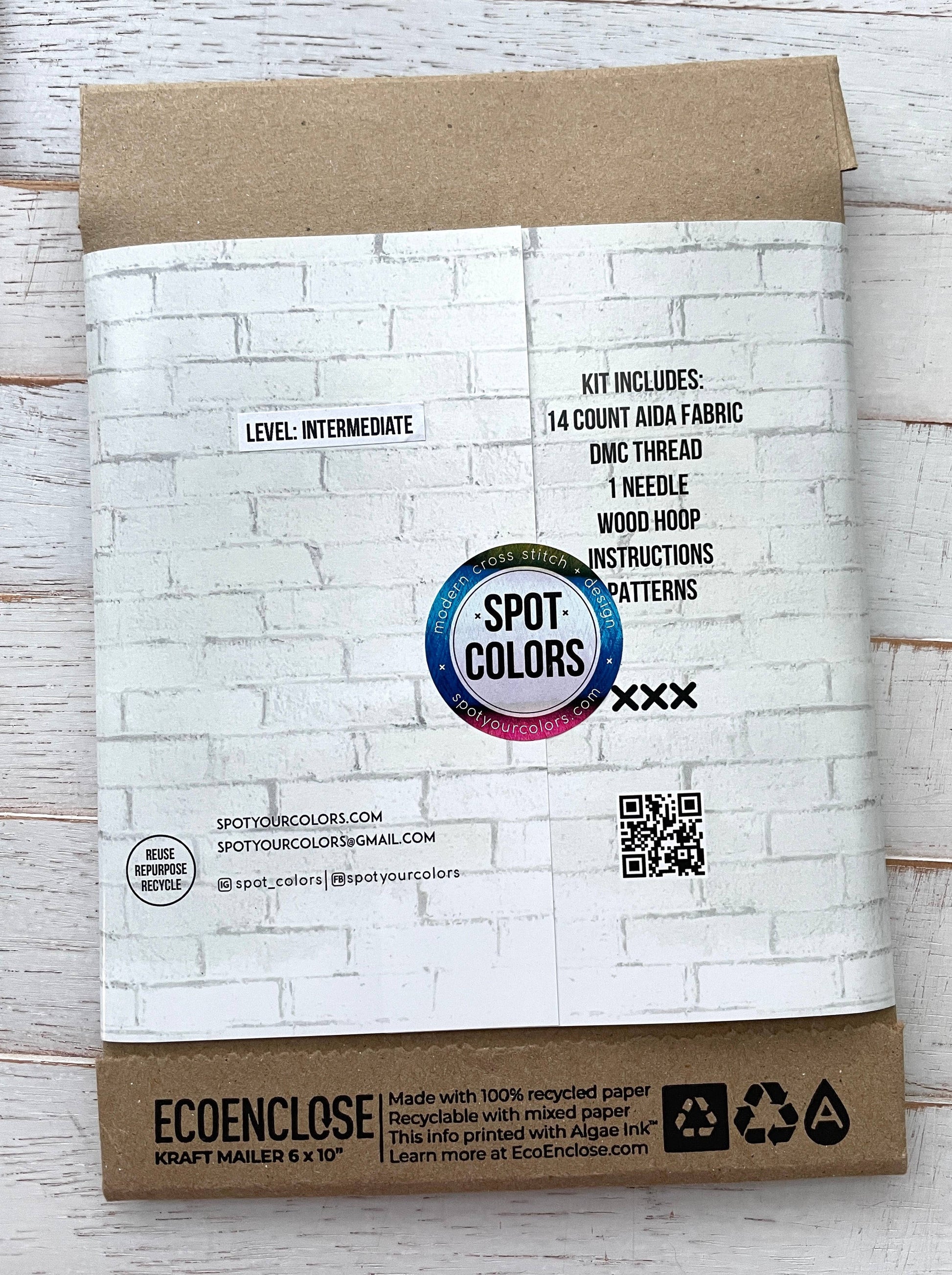 End Design fits 4” hoop Level: Intermediate. Each cross stitch includes: pattern & instructions, Aida 14 count fabric, DMC threads, 1 DMC needle, wood hoop.