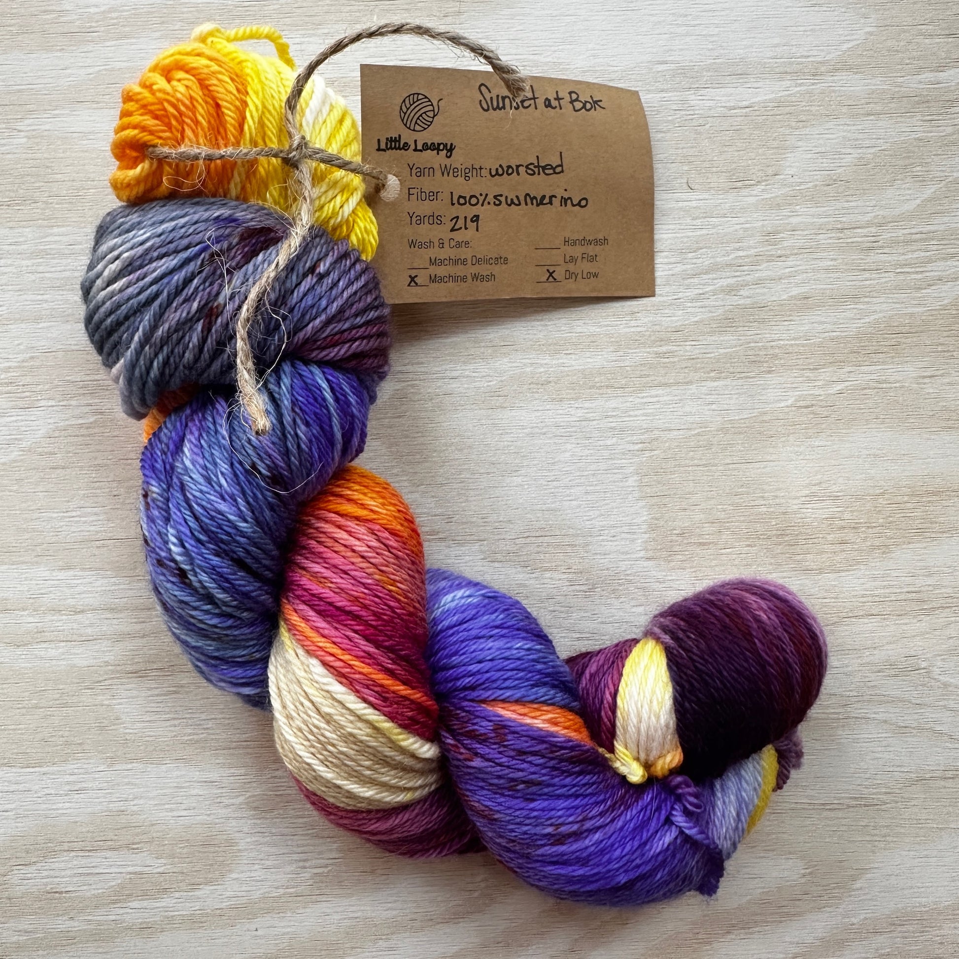 Fingering: 75% Superwash Merino, 25% Nylon. 437 yds.