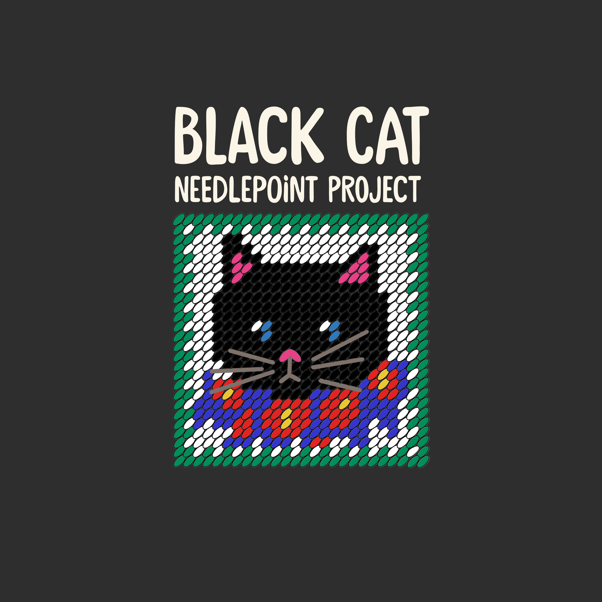 Hand stitch a cute black cat with this beginner needlepoint project!