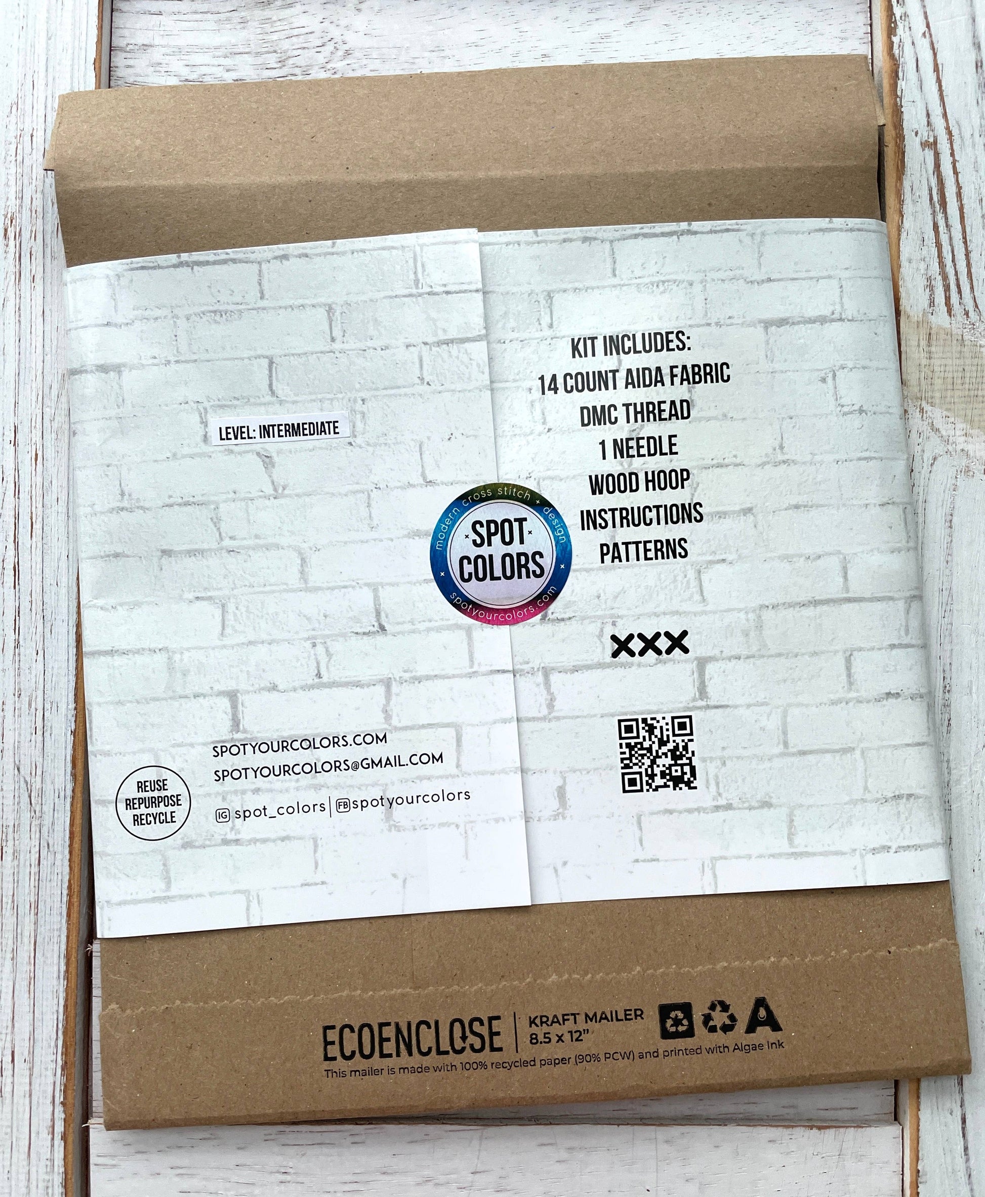 End Design fits 6” hoop Level: Intermediate. Each cross stitch includes: pattern & instructions, Aida 14 count fabric, DMC threads, 1 DMC needle, wood hoop