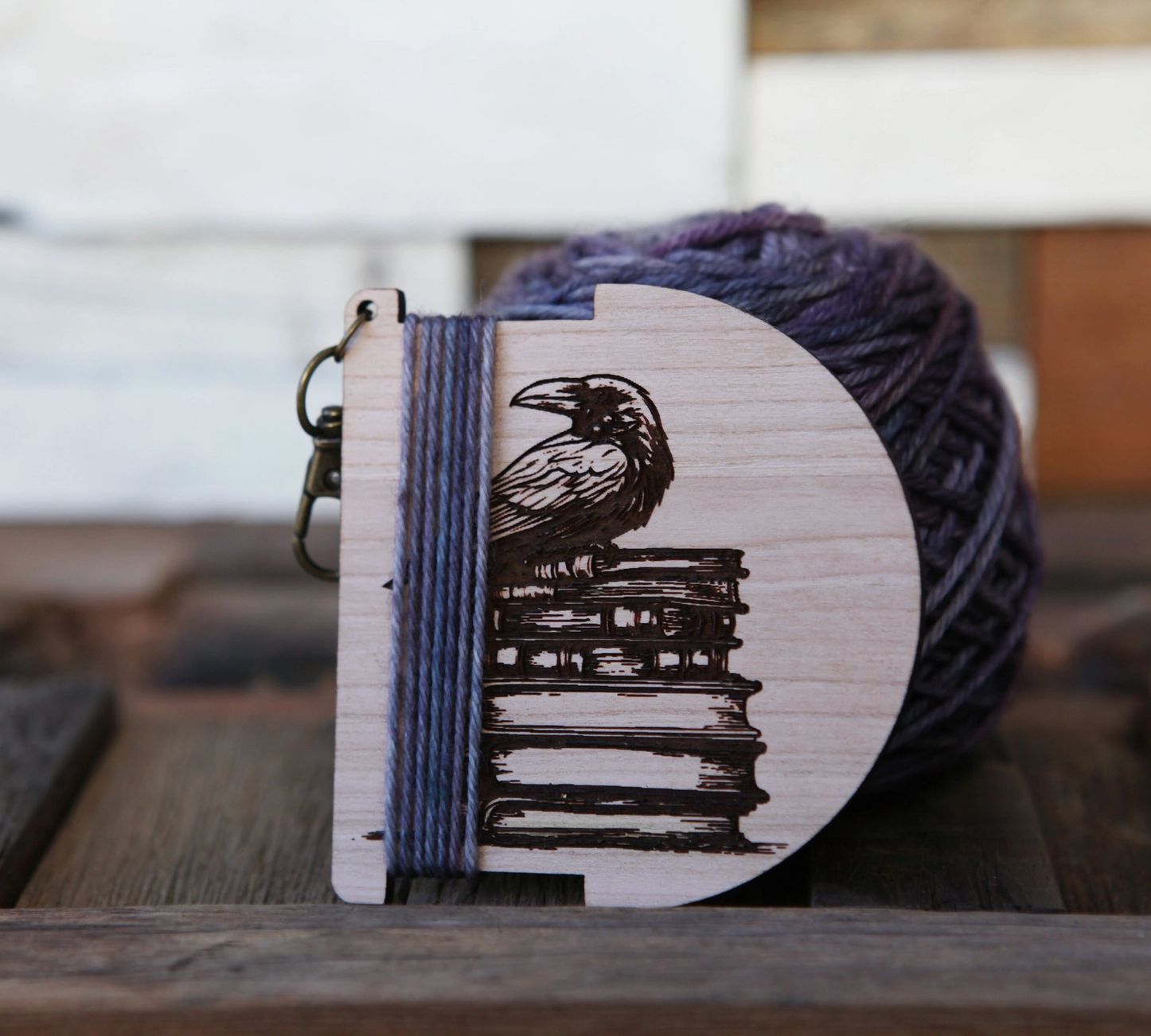Raven On Antique Books Spinners Control Tool Wpi (Wraps Per Inch) Ruler And Twist Angle Gauge For Yarn; Cherry Wood Raven on antique books Spinners Control Tool. This WPI (Wraps per Inch) Ruler and Twist Angle Gauge combo tool is made from cherry wood and is used to identify the gauge of a yarn. This is great for any who loves reading books and the love of ravens. The twist angle gauge for yarn spinning tells the angle of twist from 0-90 in increments of 10 degrees and designates S or Z twist. To measure twist angle, lay your yarn across the wood and match the twist to the closest twist angle line. Great for spinners to check to make sure they are keeping the ply twist consistent. This yarn guide measures about 3 inches tall by (almost) 3 inches wide and comes with a brass clasp to hang on your knitting bag. Since each piece of wood is unique, item you receive may be slightly different from photos.