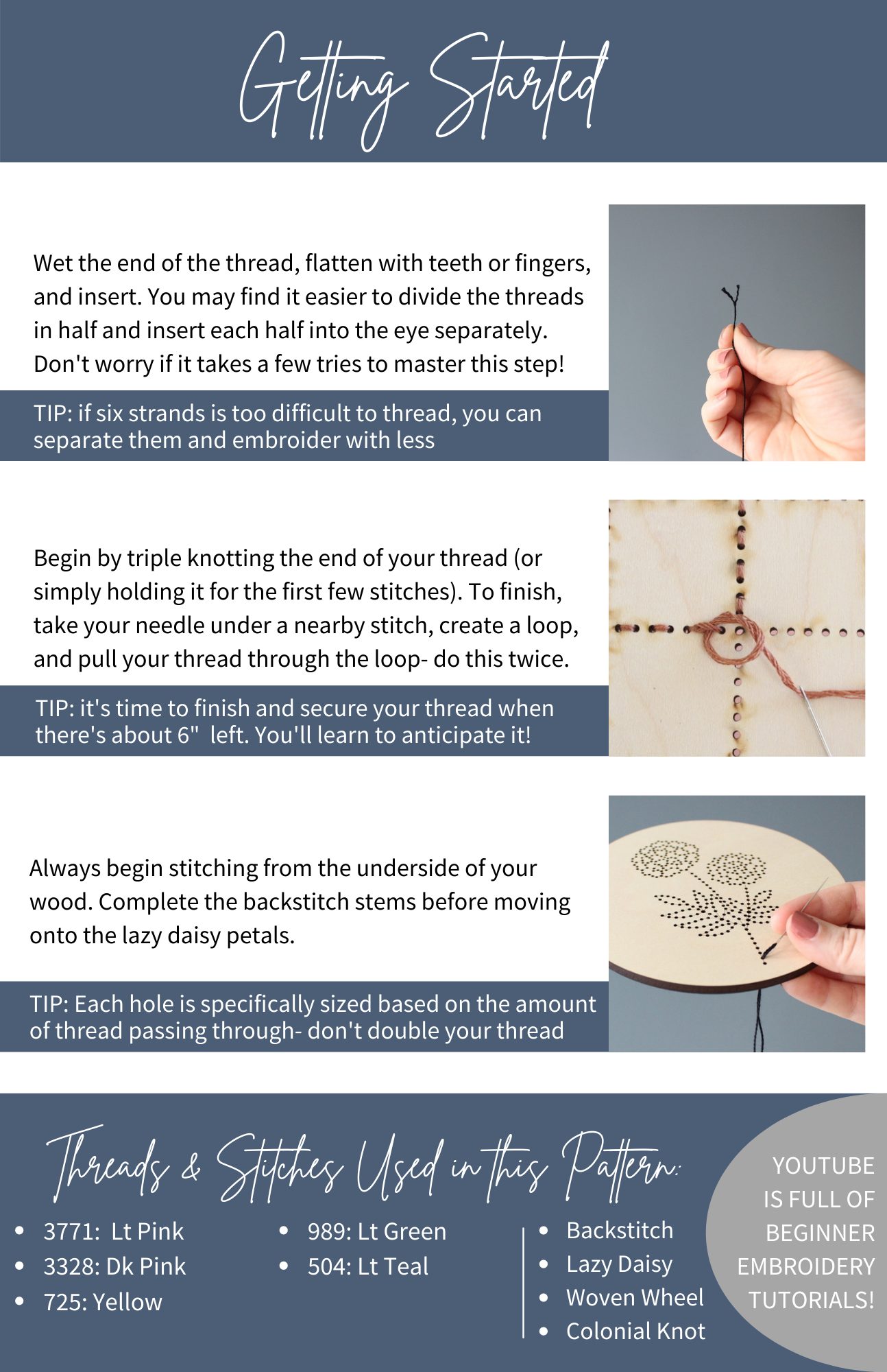 Our DIY wood embroidery kits are great for beginners and are really easy to stitch yourself! This is a fun project that comes with everything you need to complete your handmade embroidered craft, except the scissors.