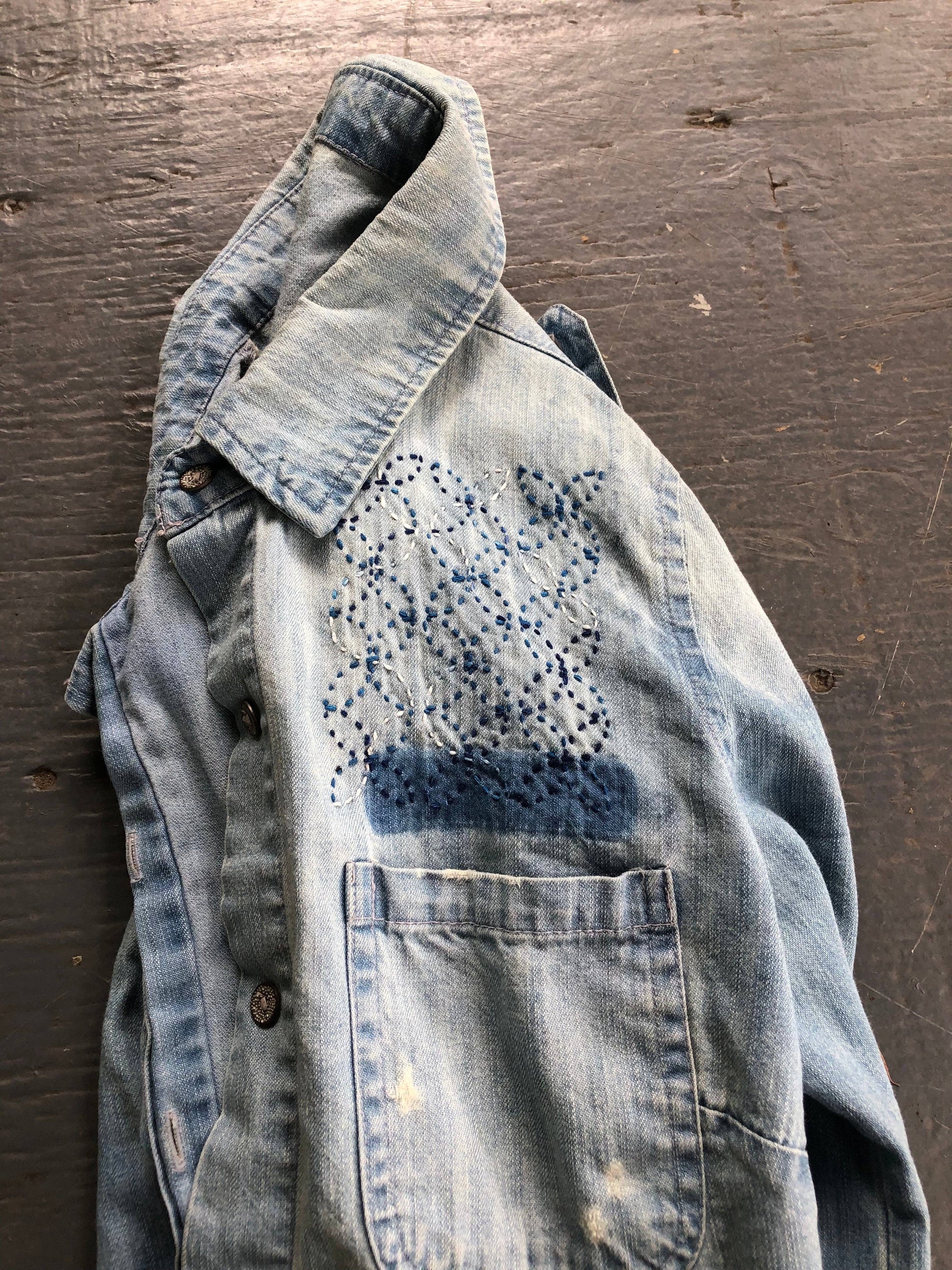 I created these water-soluble mending transfers for people like me who are looking for an easier way to transfer a beautiful pattern. No need for rulers and pencils, tracing paper, or an iron. Stick the transfer to the area to be mended, stitch the pattern, and then rinse off the sticker, and reveal your precise stitched pattern.